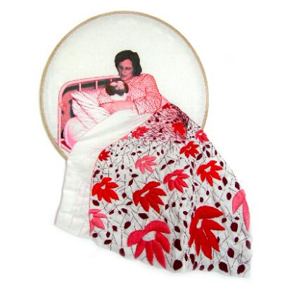 Family portrait 1, 2005, print and embroidery on cotton, 45 x 50 cm |